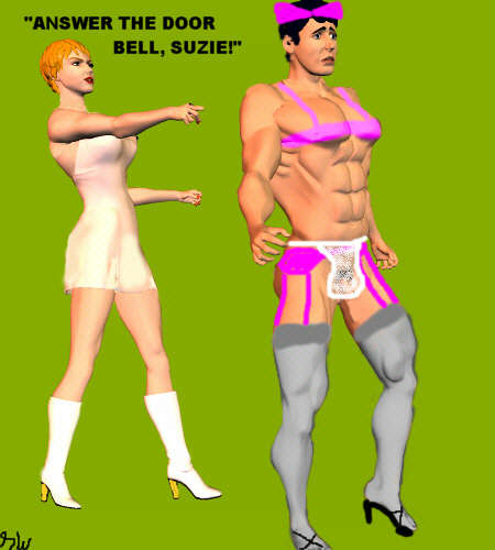 boots, and Suzy. Poor Suzie was dressed in: pink garter belt, a little apron,